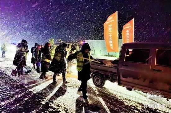 湖北片區項目群建設者連夜鏟雪除冰(項目 供圖)