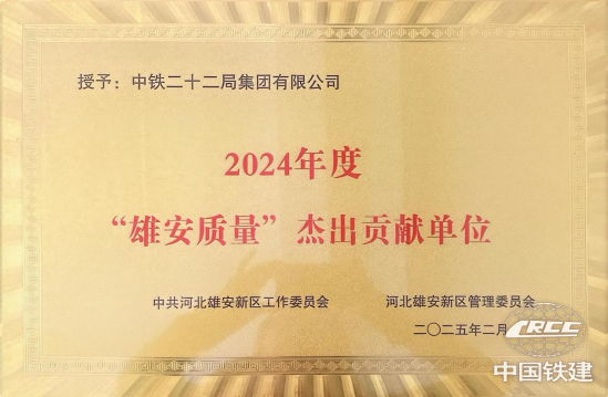 近日,中鐵二十二局憑借在雄安新區工程建設中的卓越貢獻,榮獲中共河北雄安新區工作委員會、河北雄安新區管理委員會授予的“2024年度‘雄安質量’杰出貢獻單位”稱號。與此同時,中鐵二十二局“聚要素”團隊因在“雄安質量”創建過程中的創新突破獲專項表彰,彰顯了央企在服務國家重大戰略中的責任擔當與專業實力。